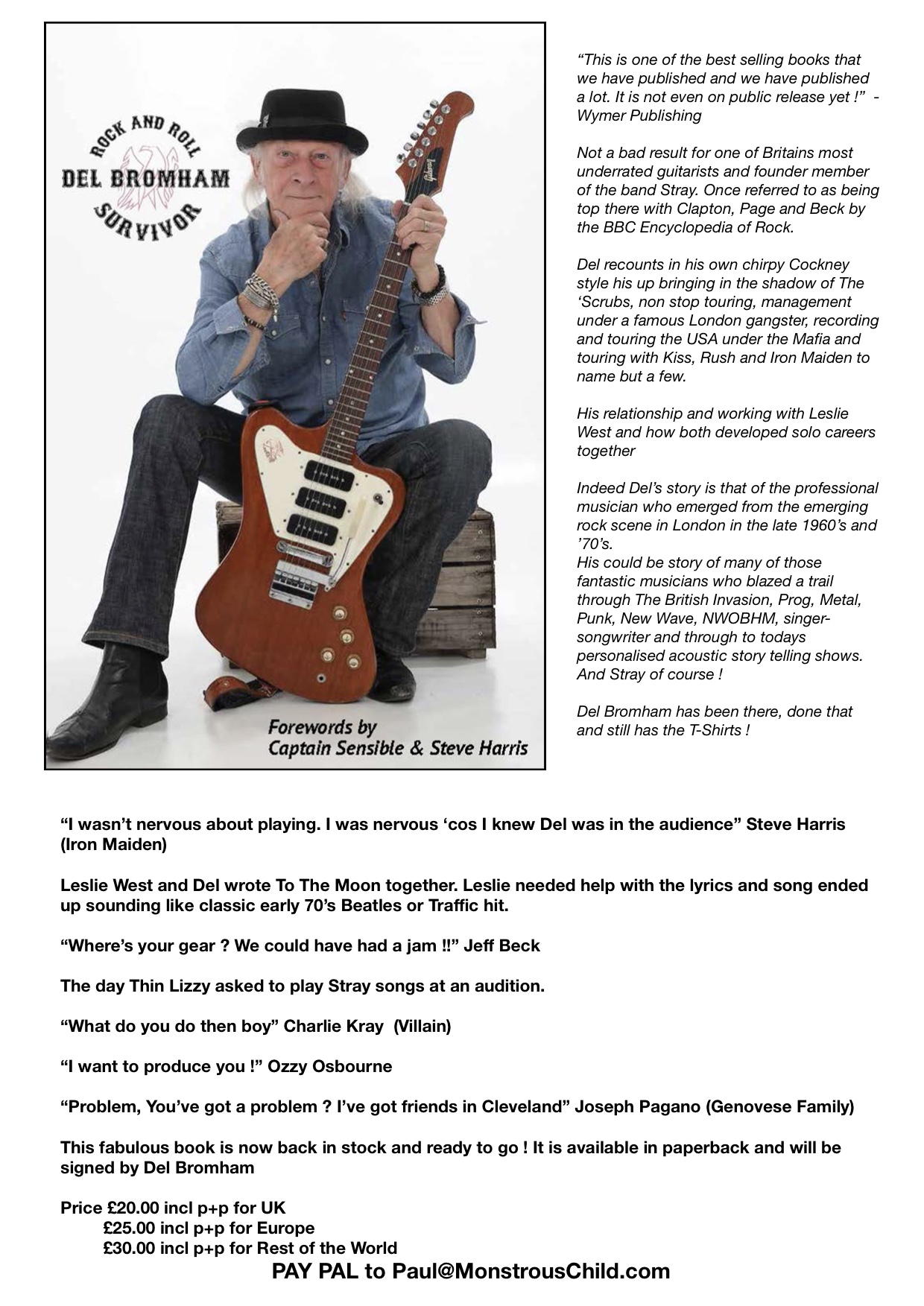 Monstrous Child Ltd are pleased to announce that the long awaited autobiography from Del Bromham is now back in stock for immediate despatch. See http://www.monstrouschild.com/shop-page/ for more info.